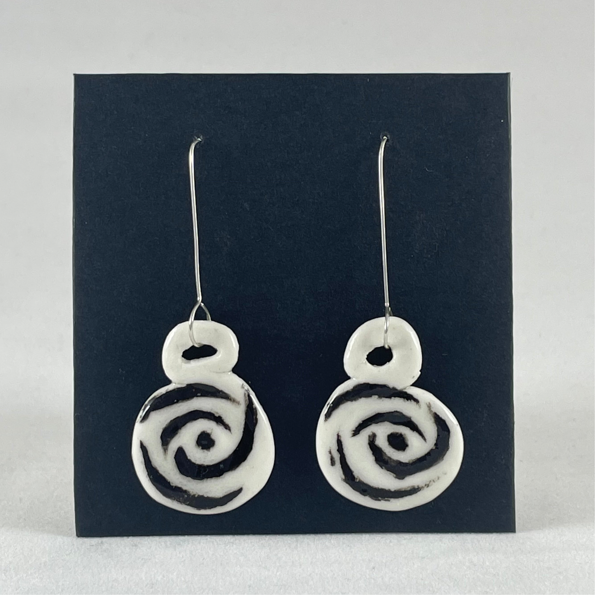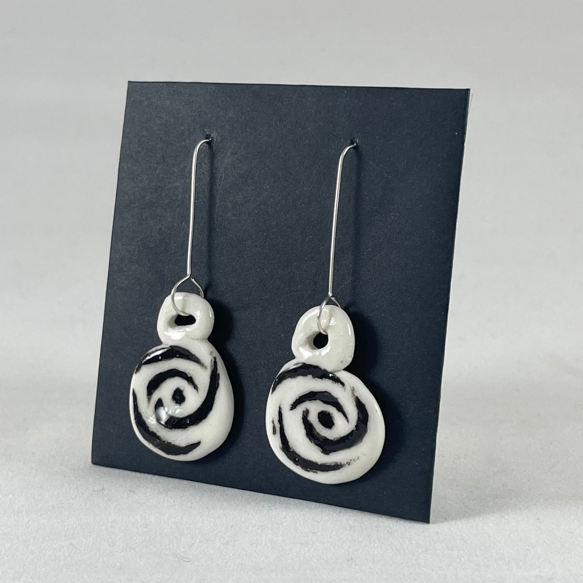 Striking brush strokes that draw the eye. Hand coiled porcelain earrings in black and white.