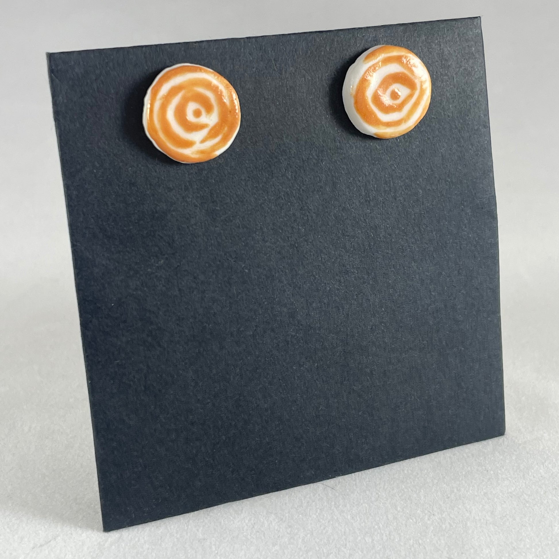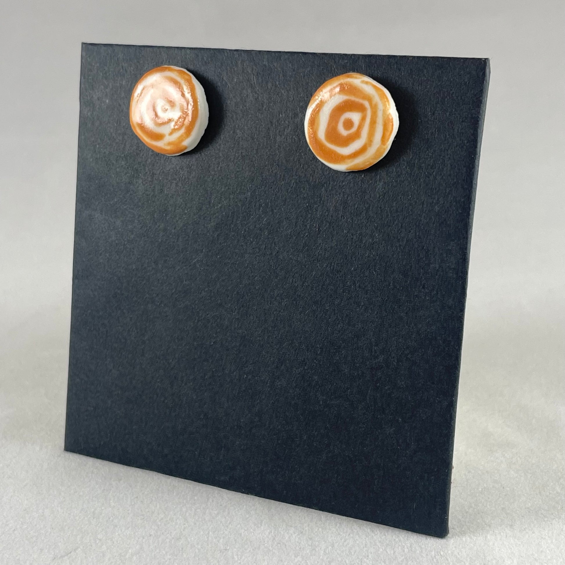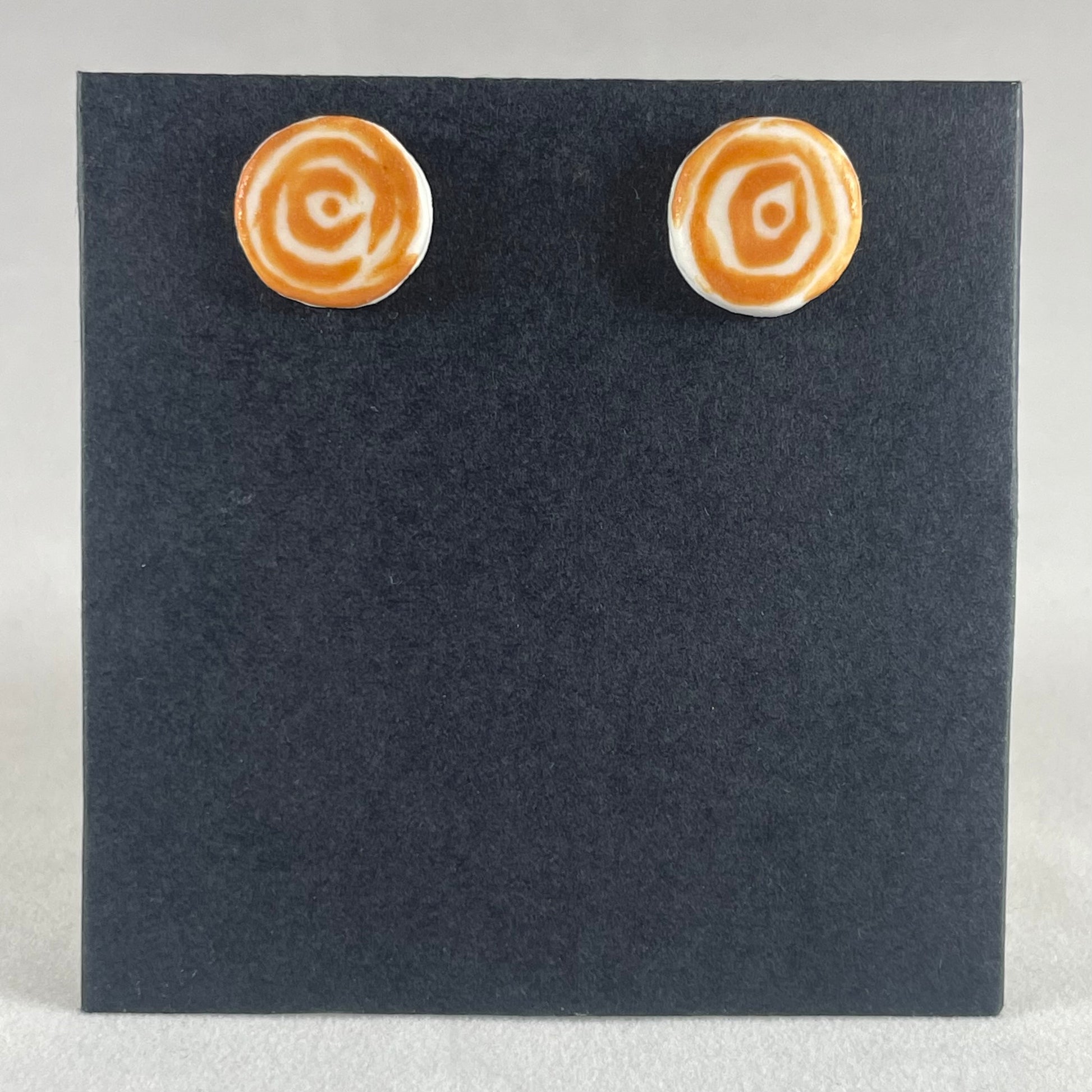 Happy stud earrings. Hand-painted orange glaze on white porcelain.