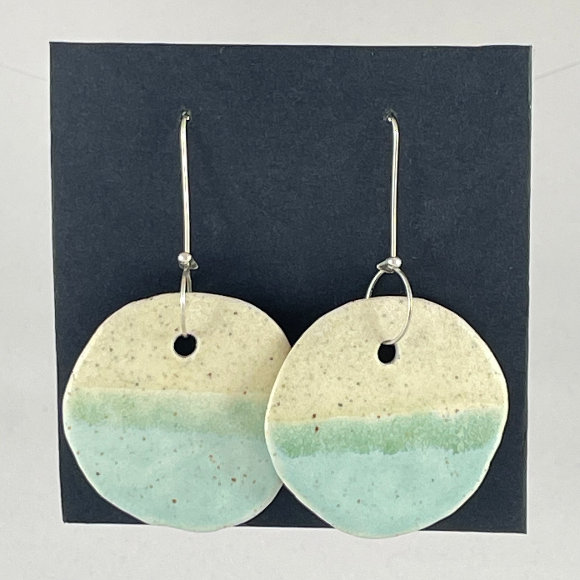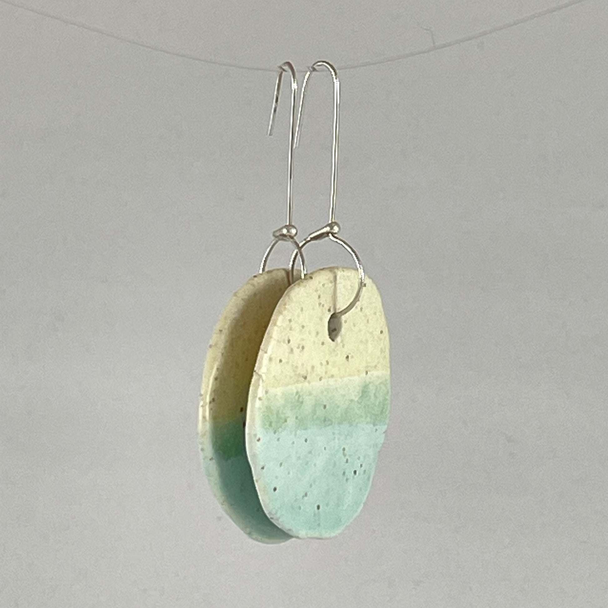 Glossy mint offset by natural speckled clay. Hand formed speckled clay earrings dipped in mint green.