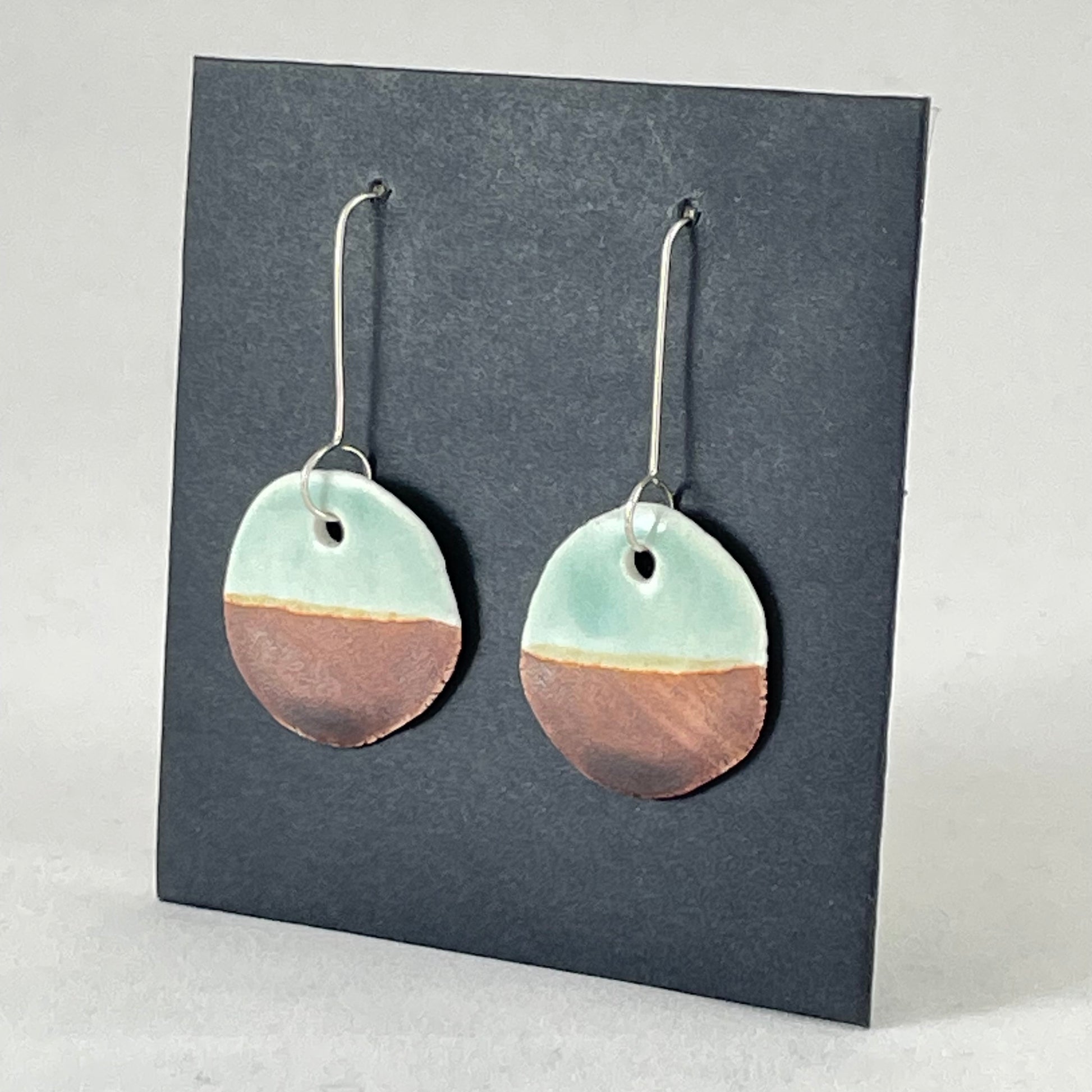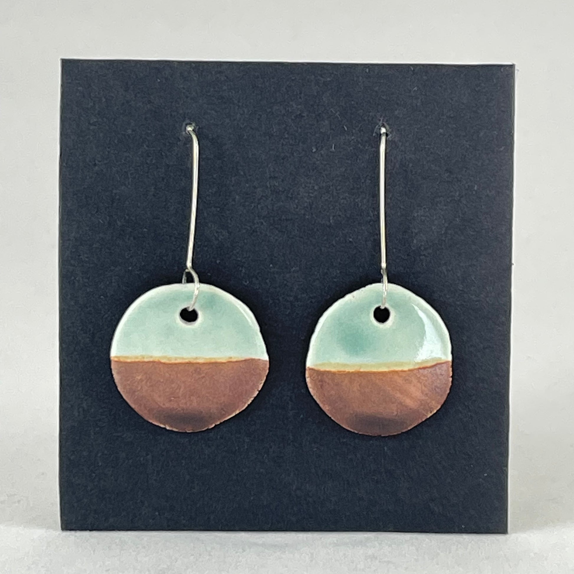 Contrasting colours inspired by the Australian desert. Hand formed porcelain earrings in mint green and brown.