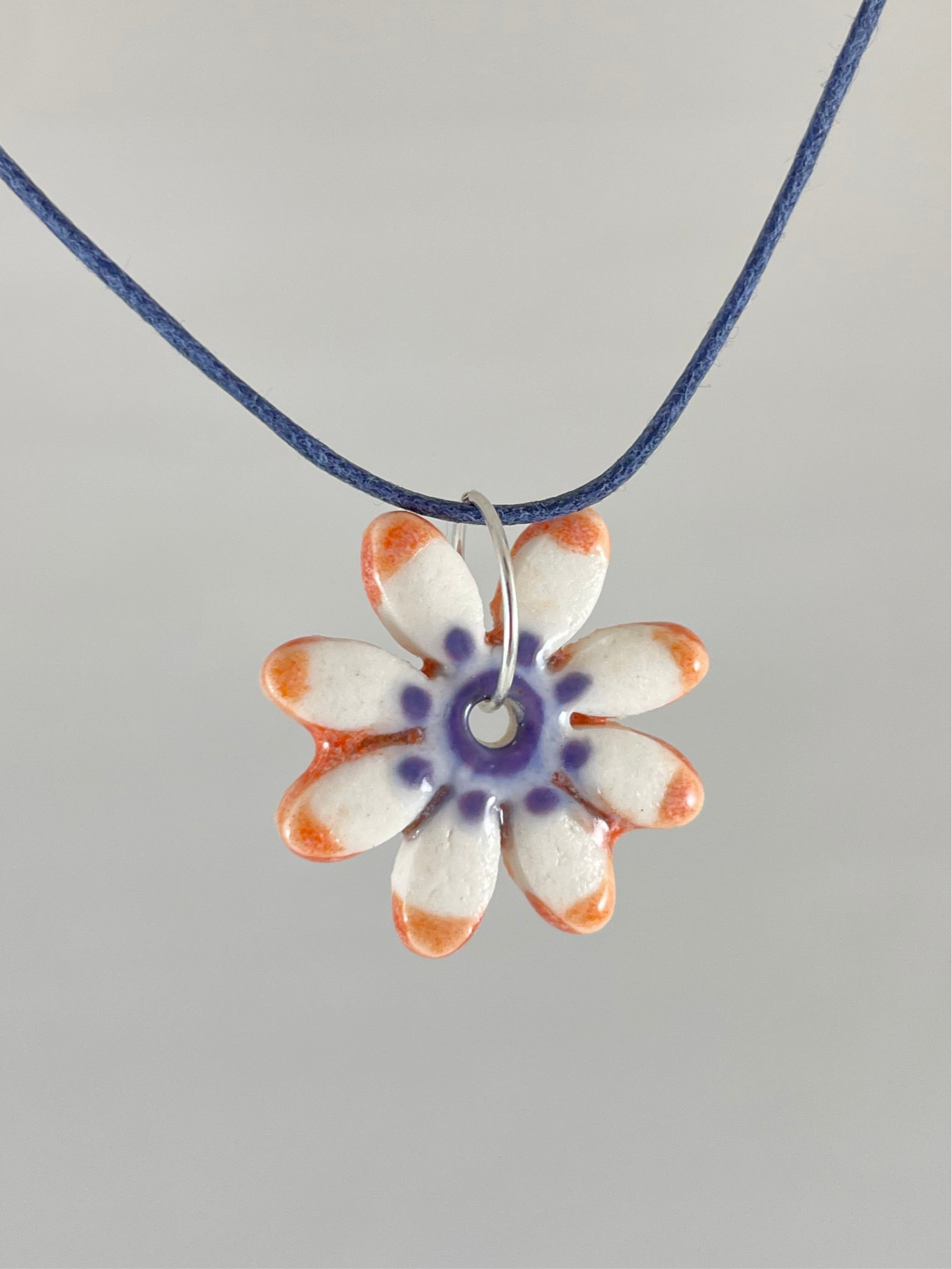 Cute daisy necklace. Hand painted porcelain in lavender, white and orange.
