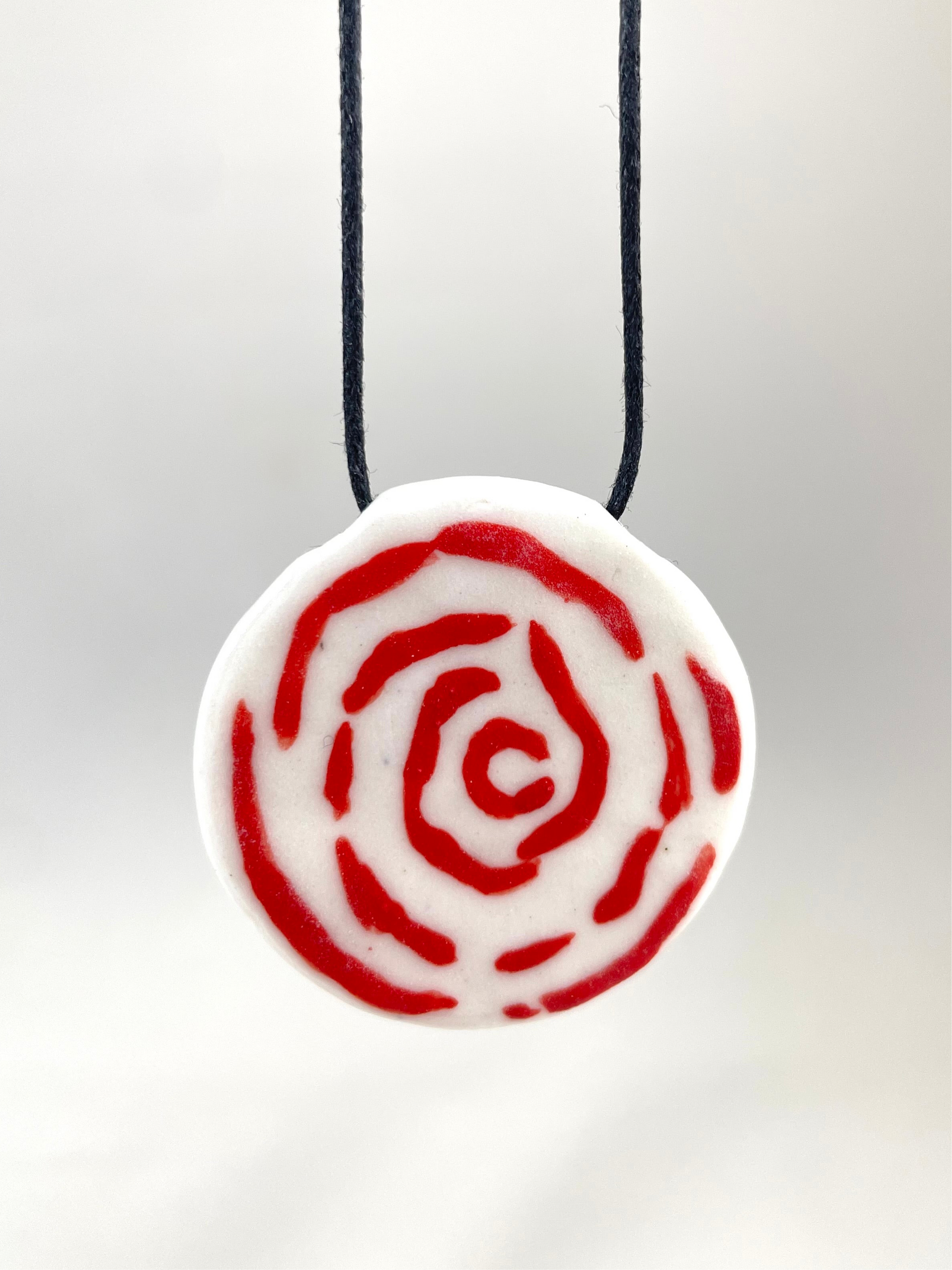 •Glossy porcelain pendant on fine waxed cotton thread. Choose your thread colour: natural, navy blue or black.