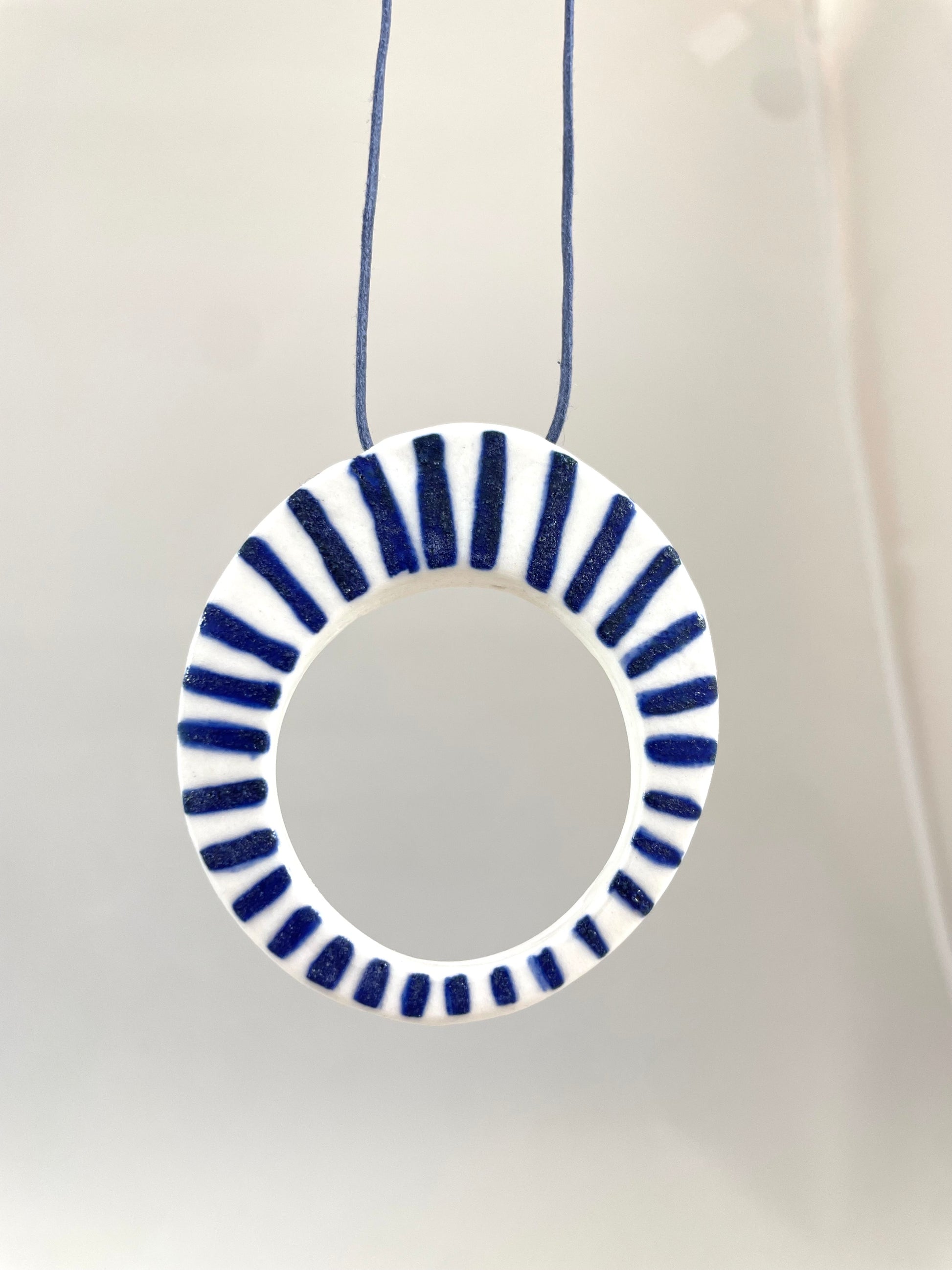 •Glossy porcelain pendant on fine waxed cotton thread. Choose your thread colour: natural, navy blue or black.