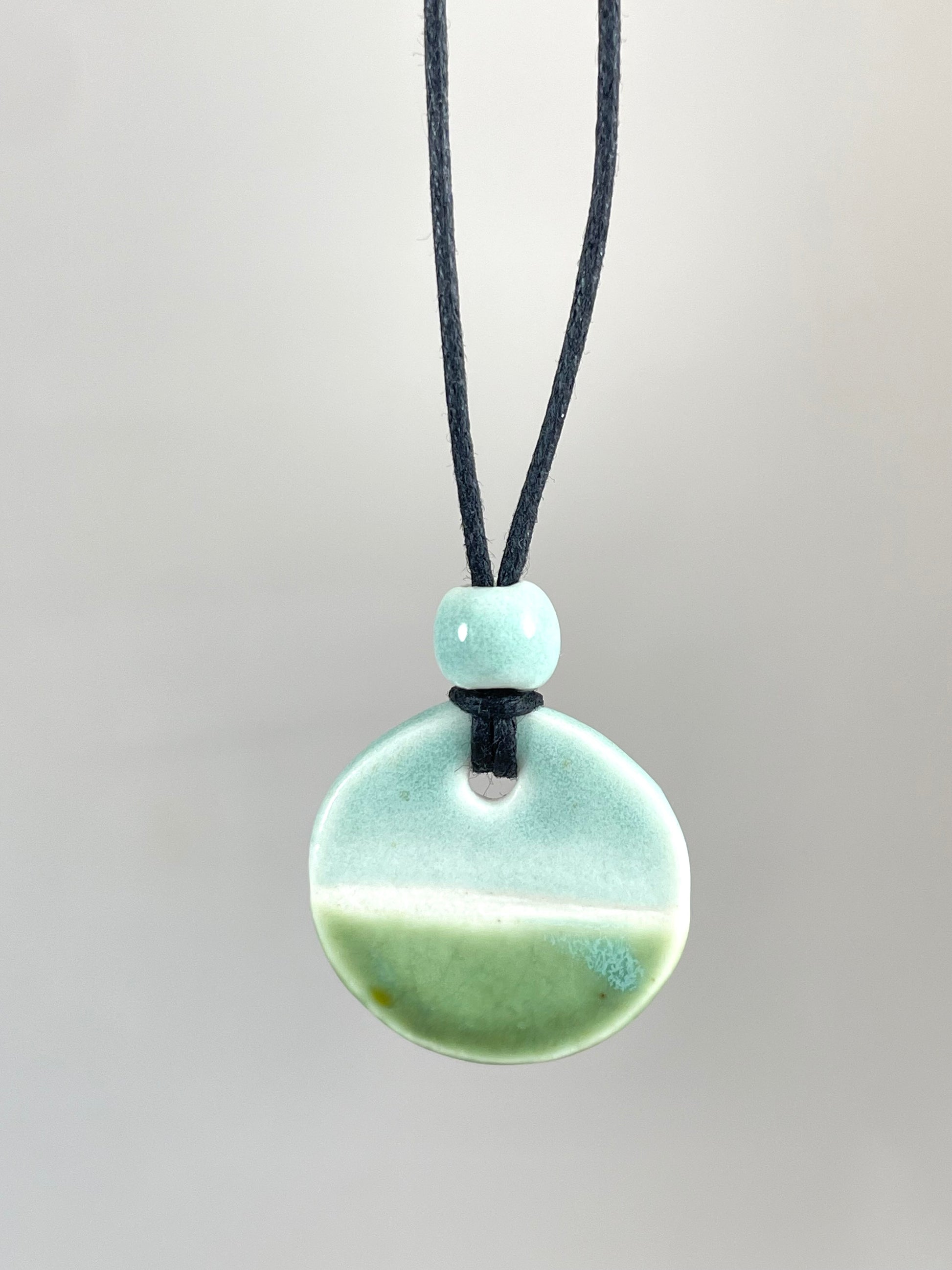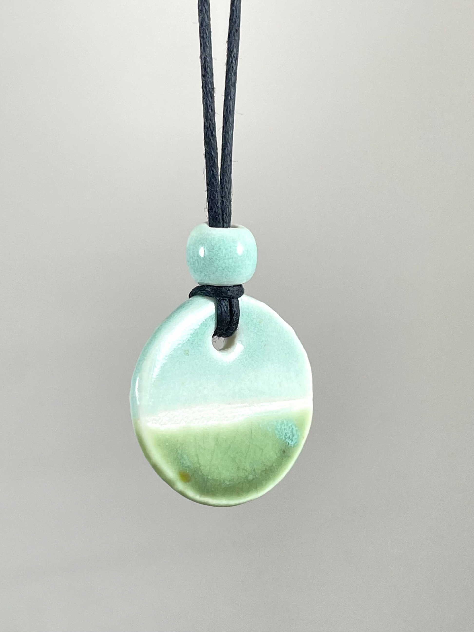 •Glossy porcelain pendant and bead on fine waxed cotton thread