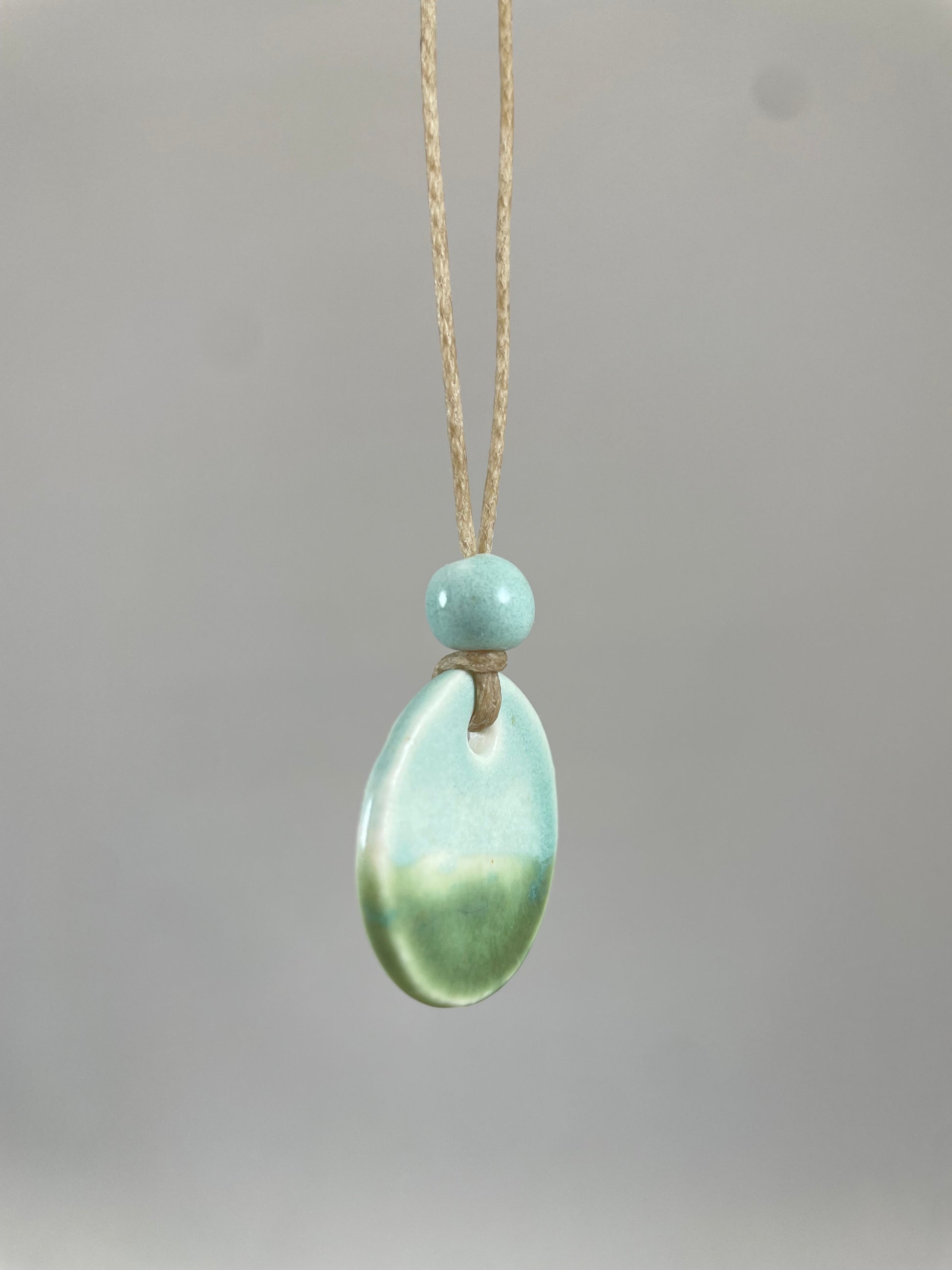 Gorgeous botanical greens. Pendant necklace made of lightweight porcelain.