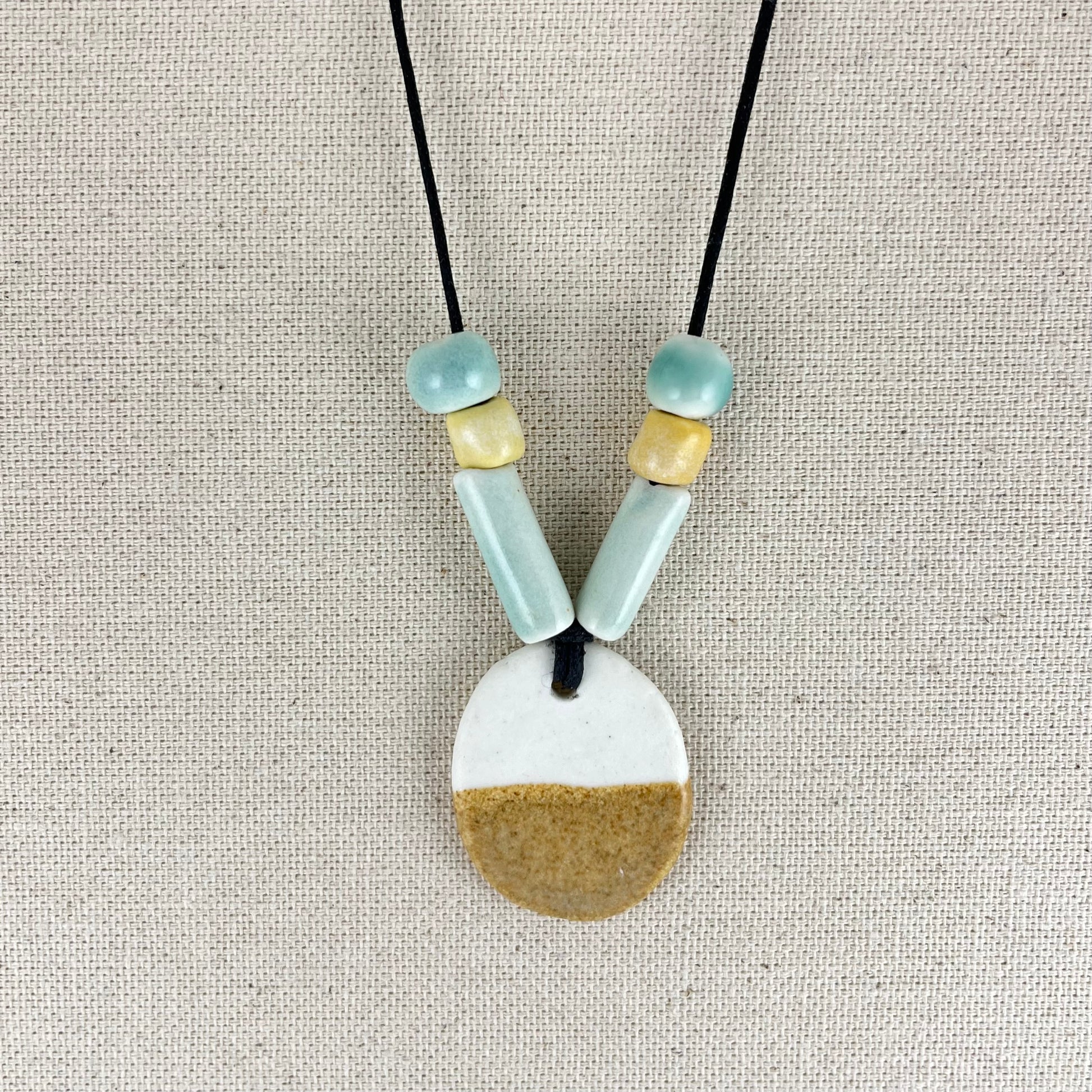 •Glossy porcelain beads & pendant on fine waxed cotton thread