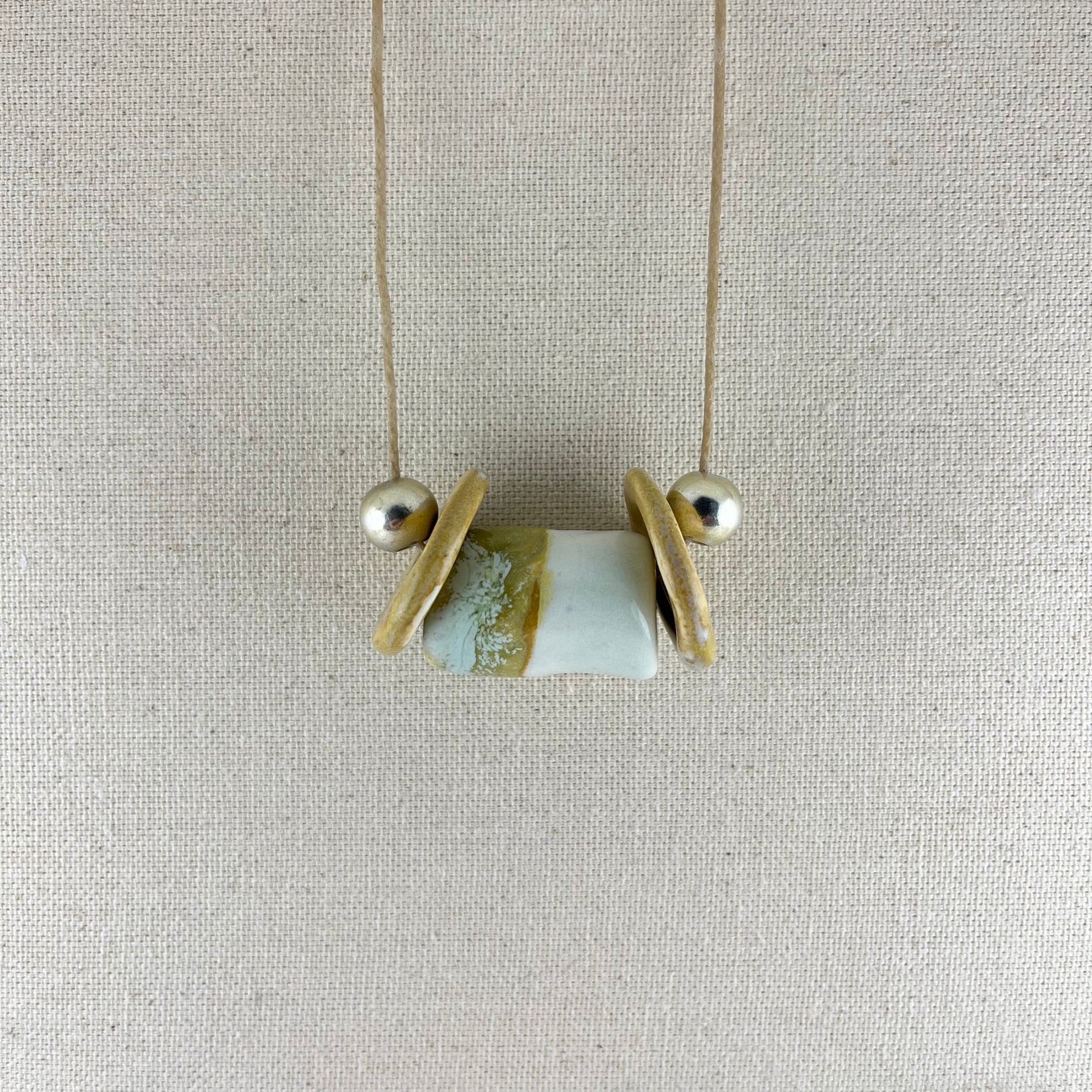 Chunky statement necklace made of porcelain. Warm golden brown reminiscent of shimmering sand.