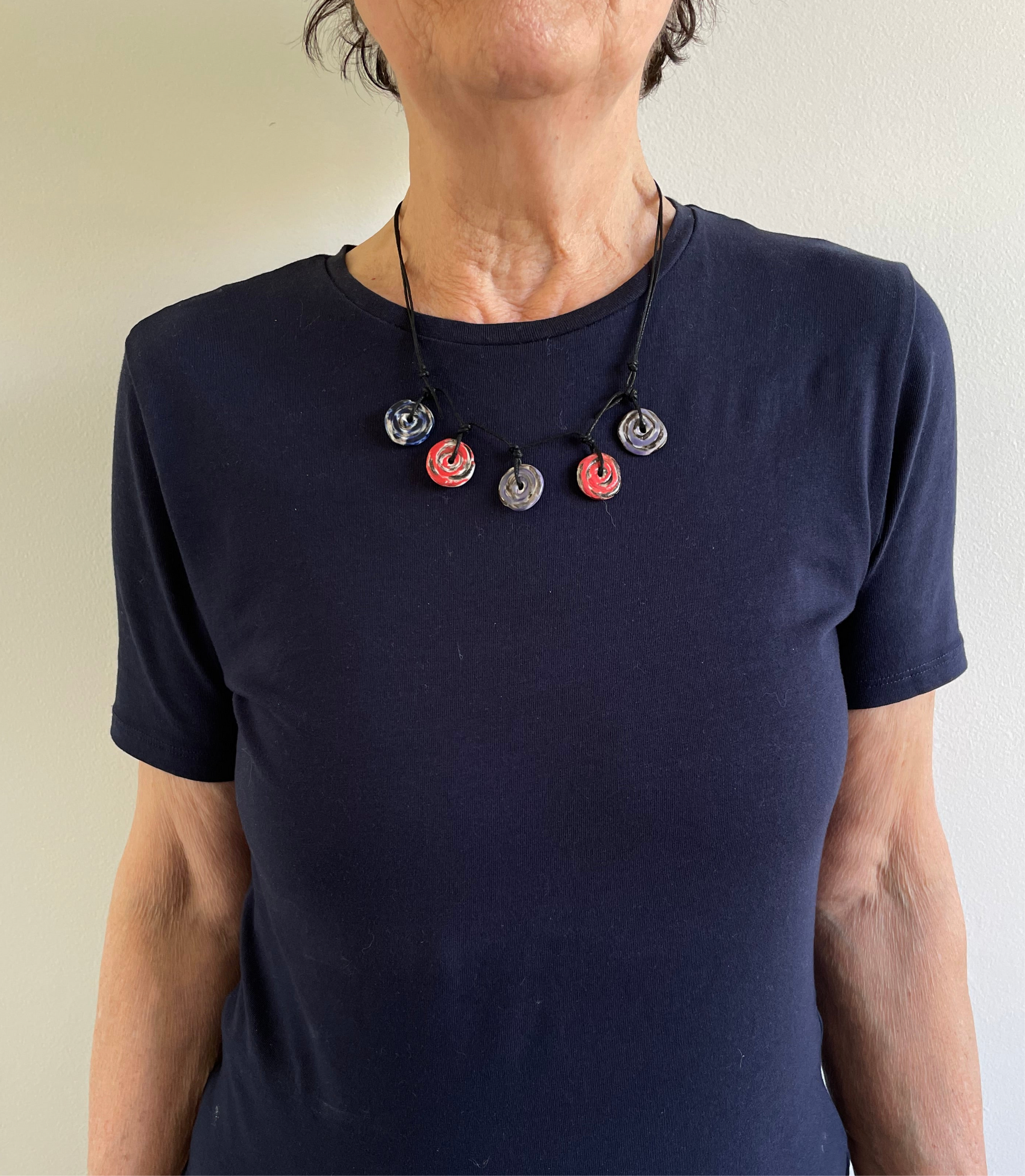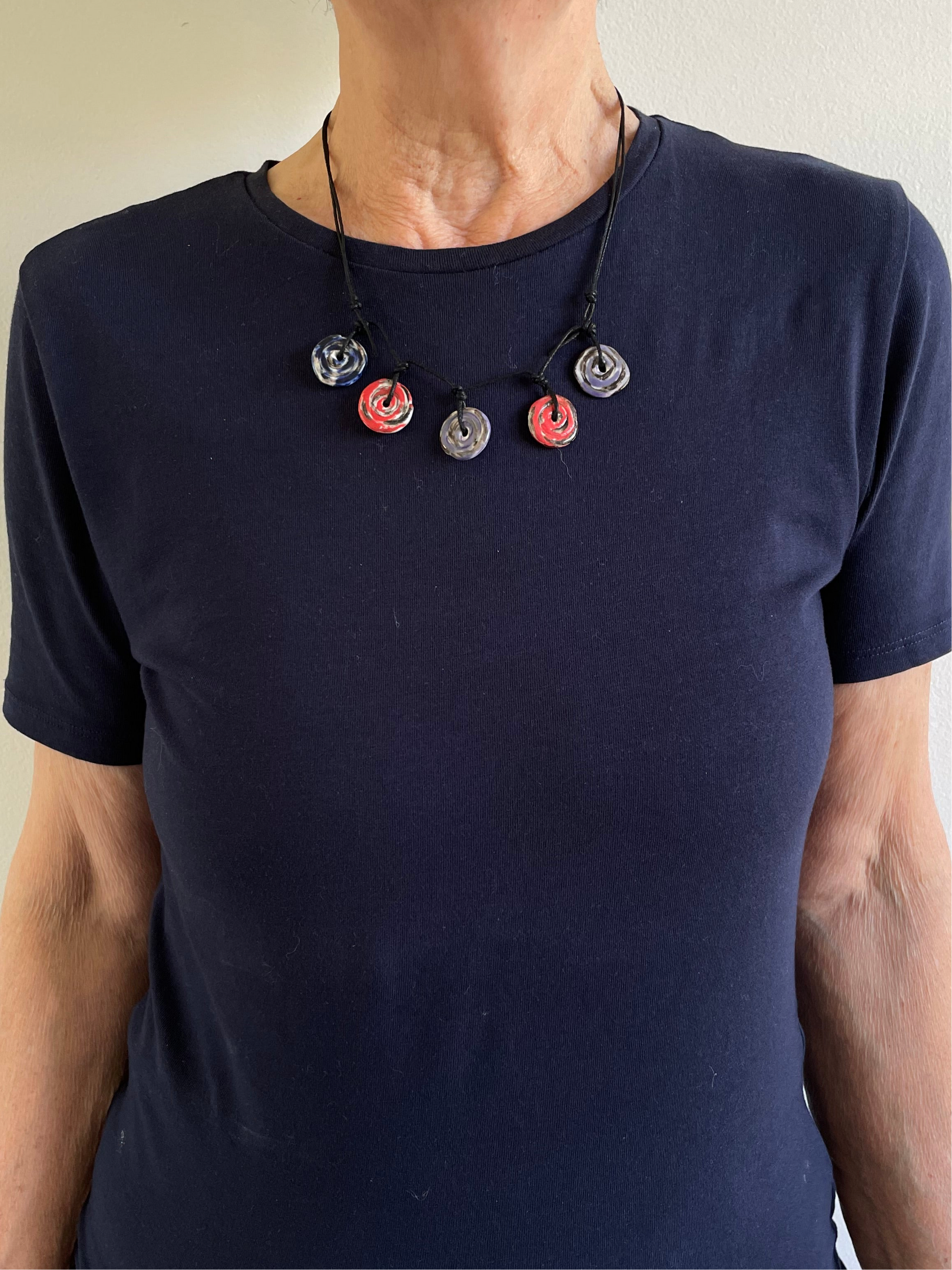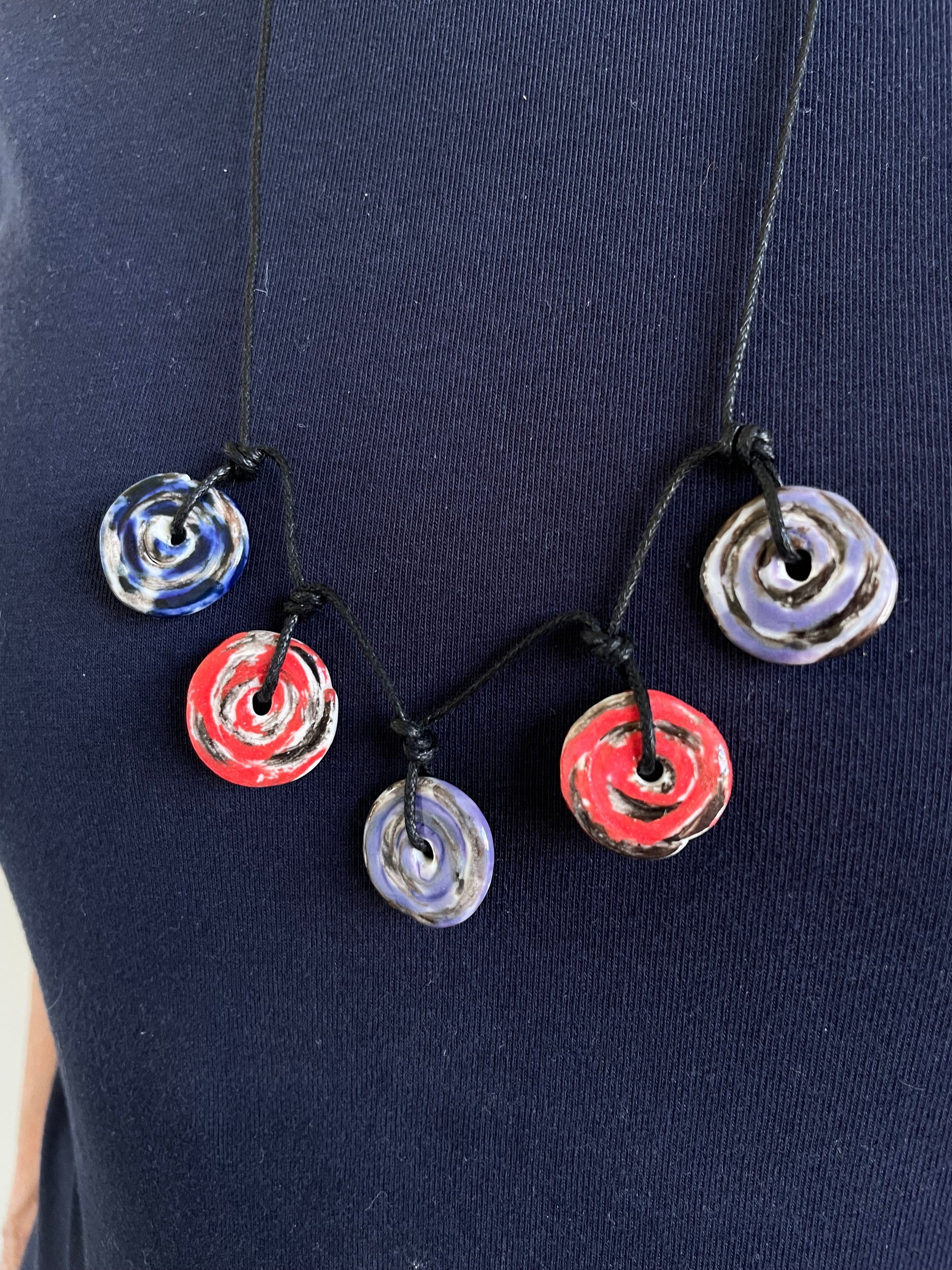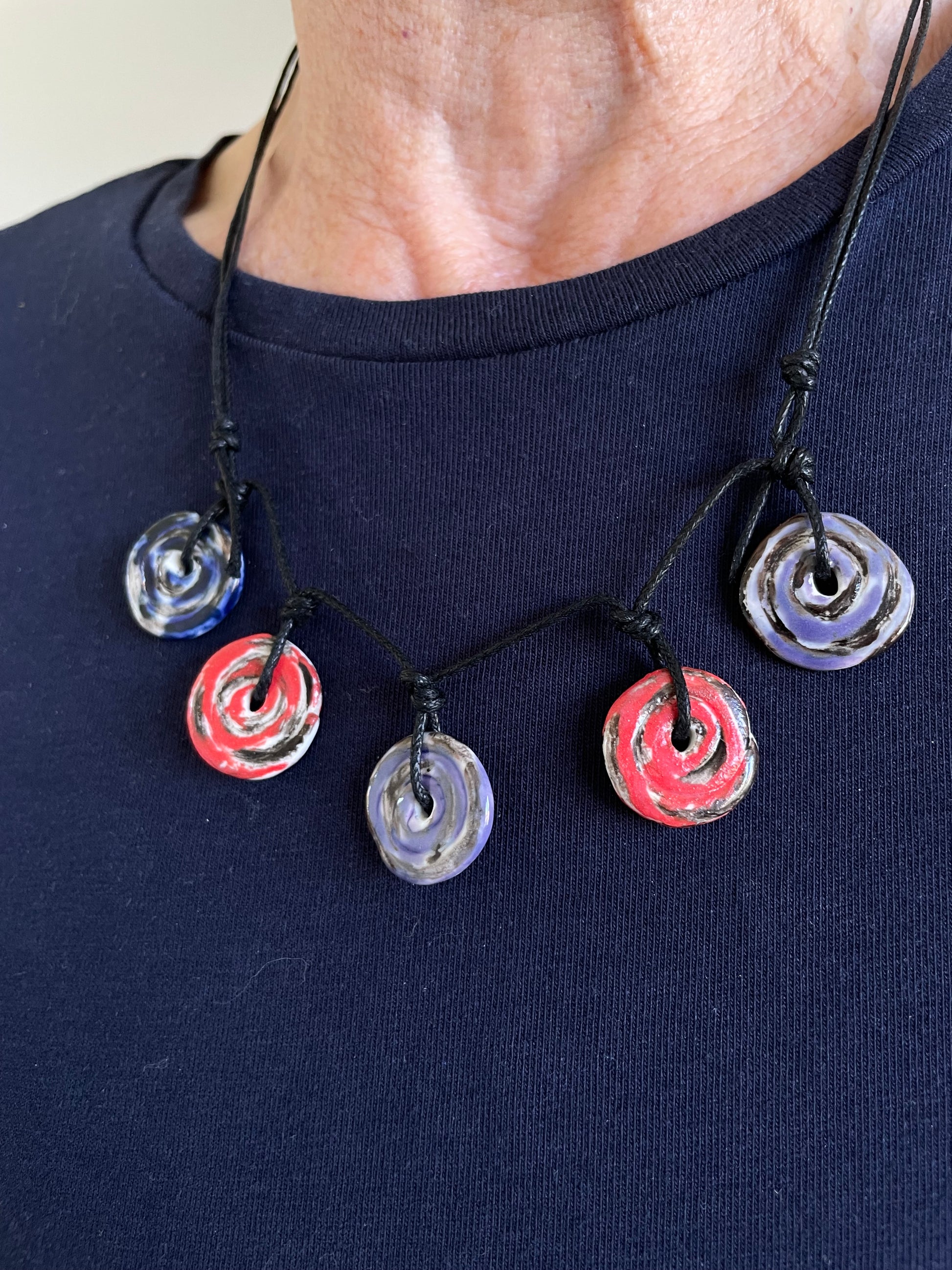 Porcelain necklace sample, handmade in Melbourne. Pendant is on an adjustable waxed cotton thread. Hand formed using porcelain clay. Adjust necklace length by pulling knots closer or farther apart.