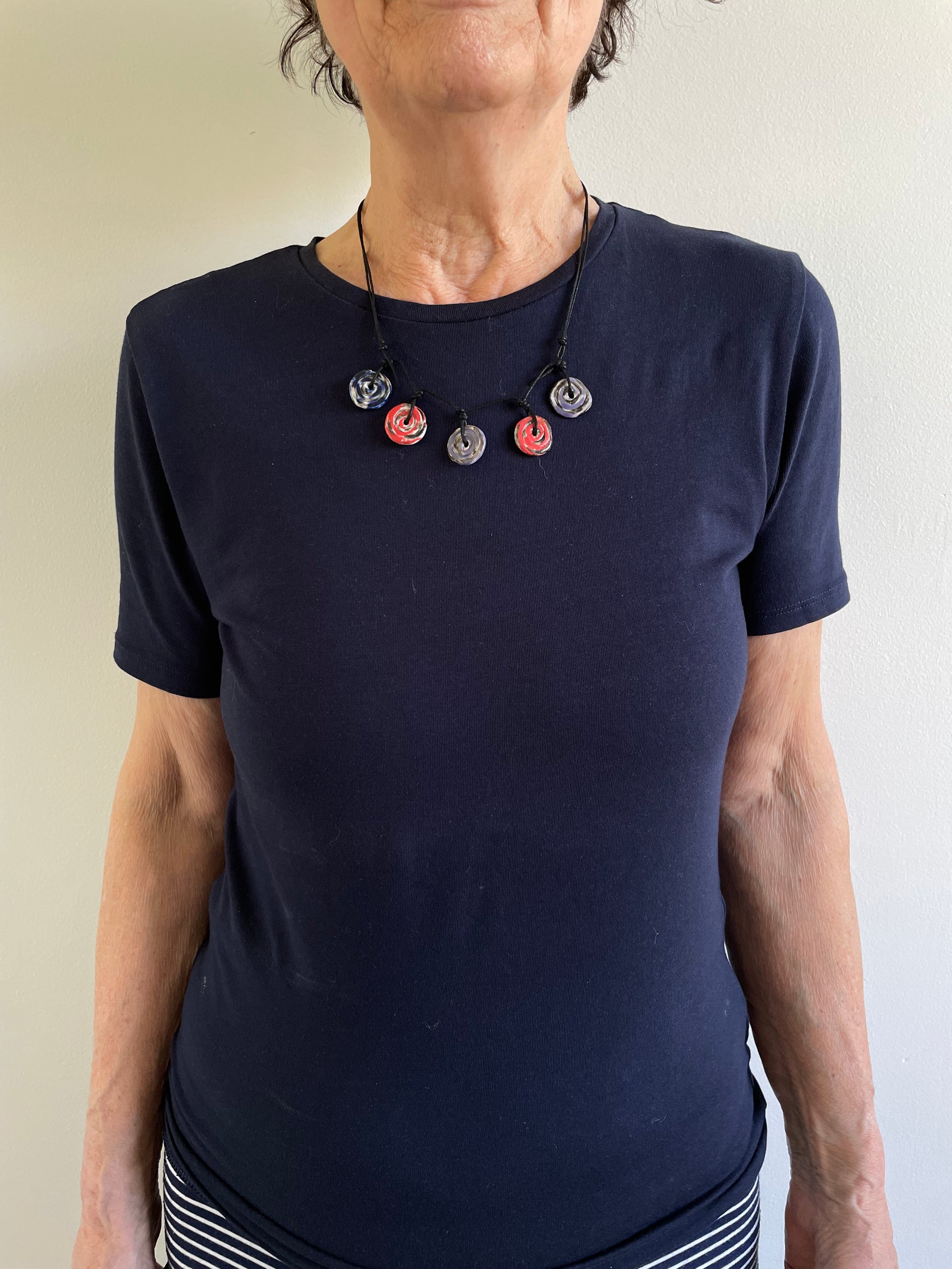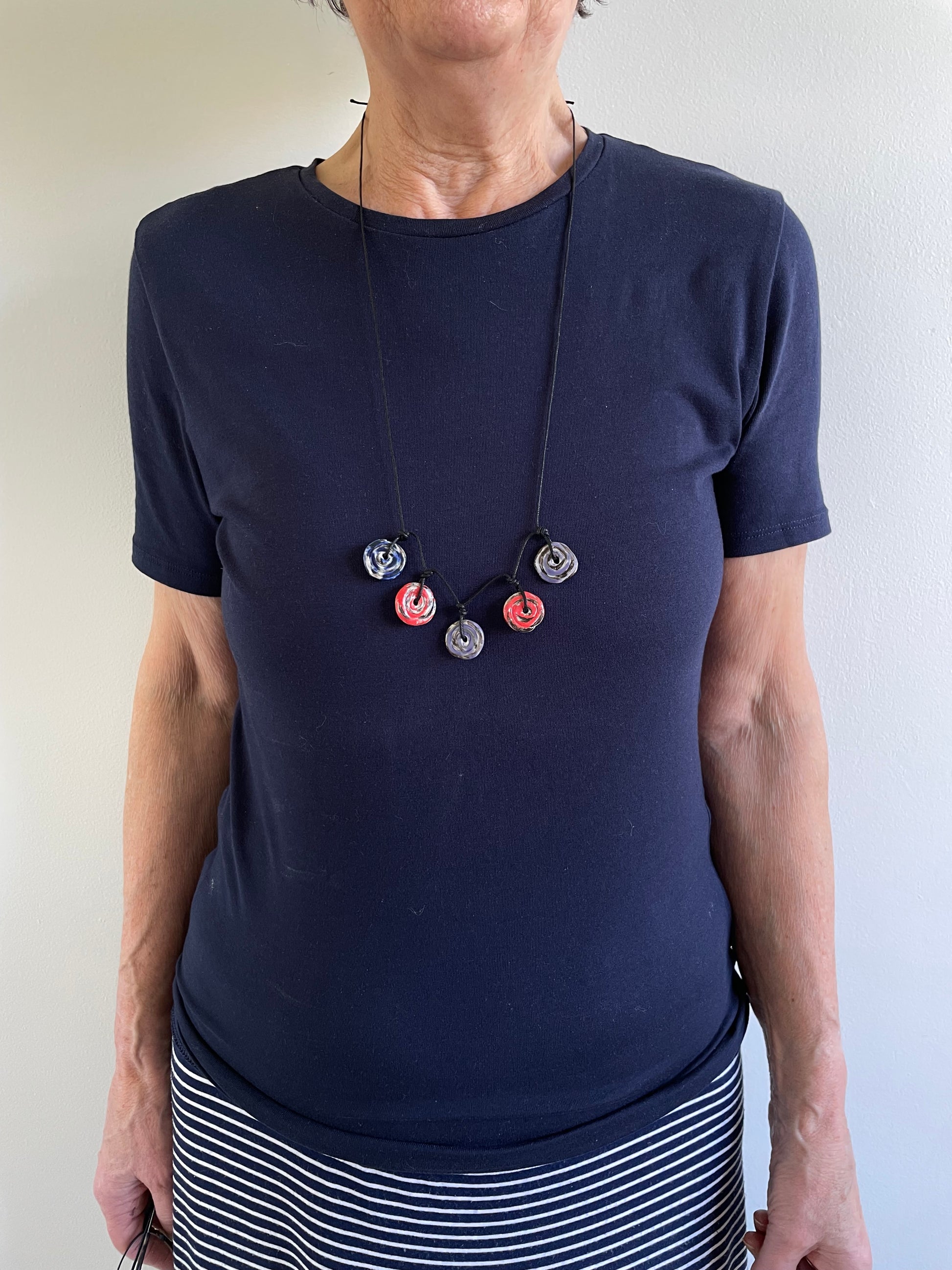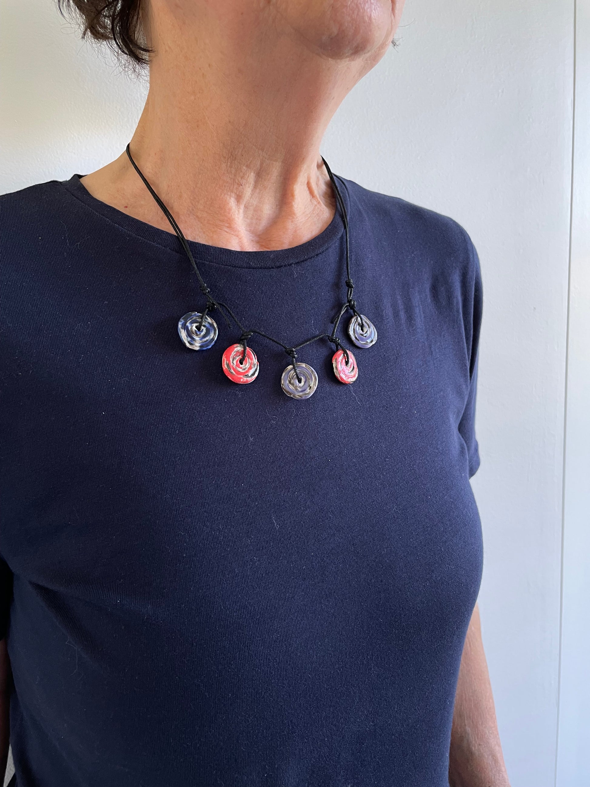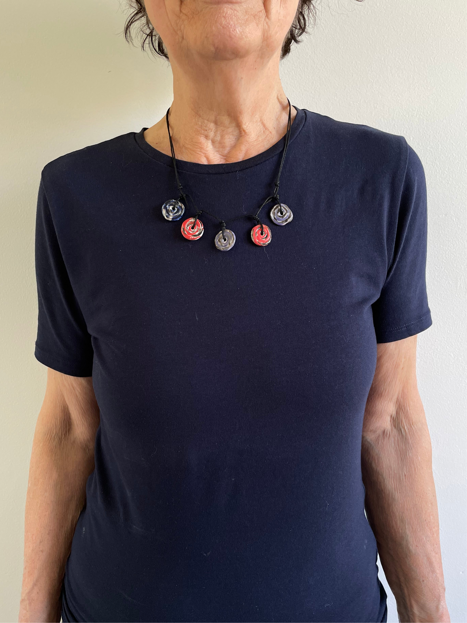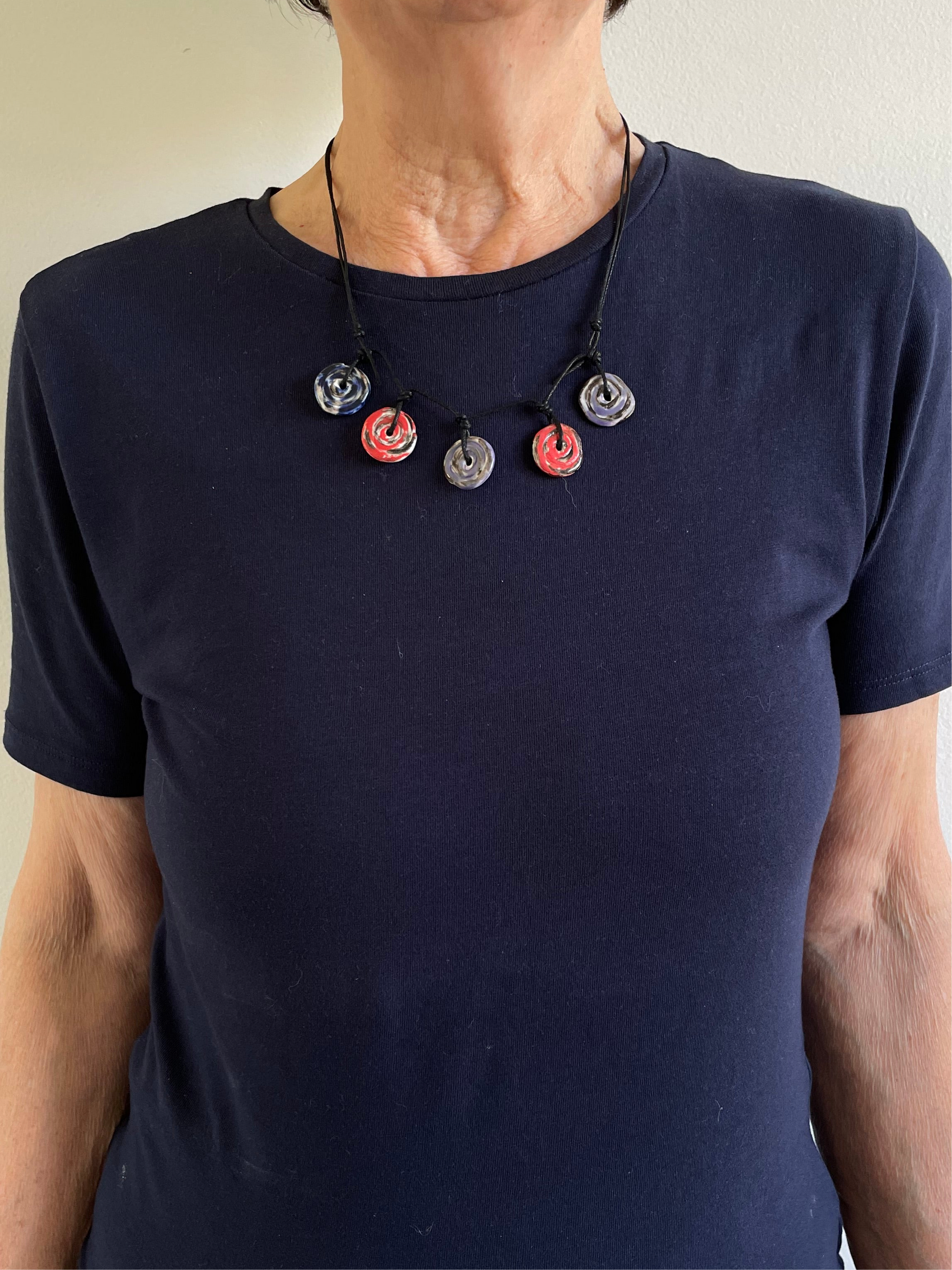 Porcelain necklace sample, handmade in Melbourne. Pendant is on an adjustable waxed cotton thread. Hand formed using porcelain clay. Adjust necklace length by pulling knots closer or farther apart.