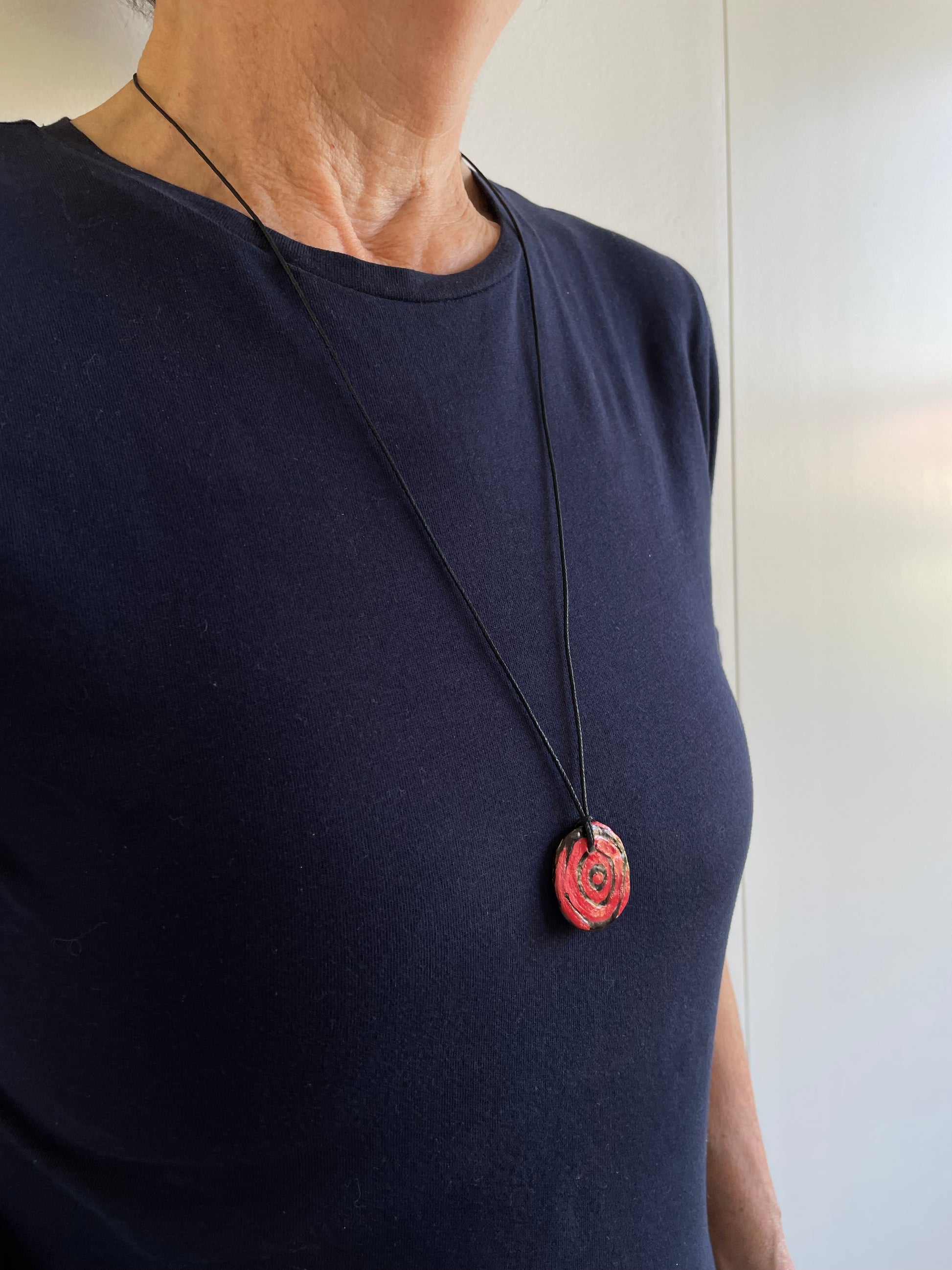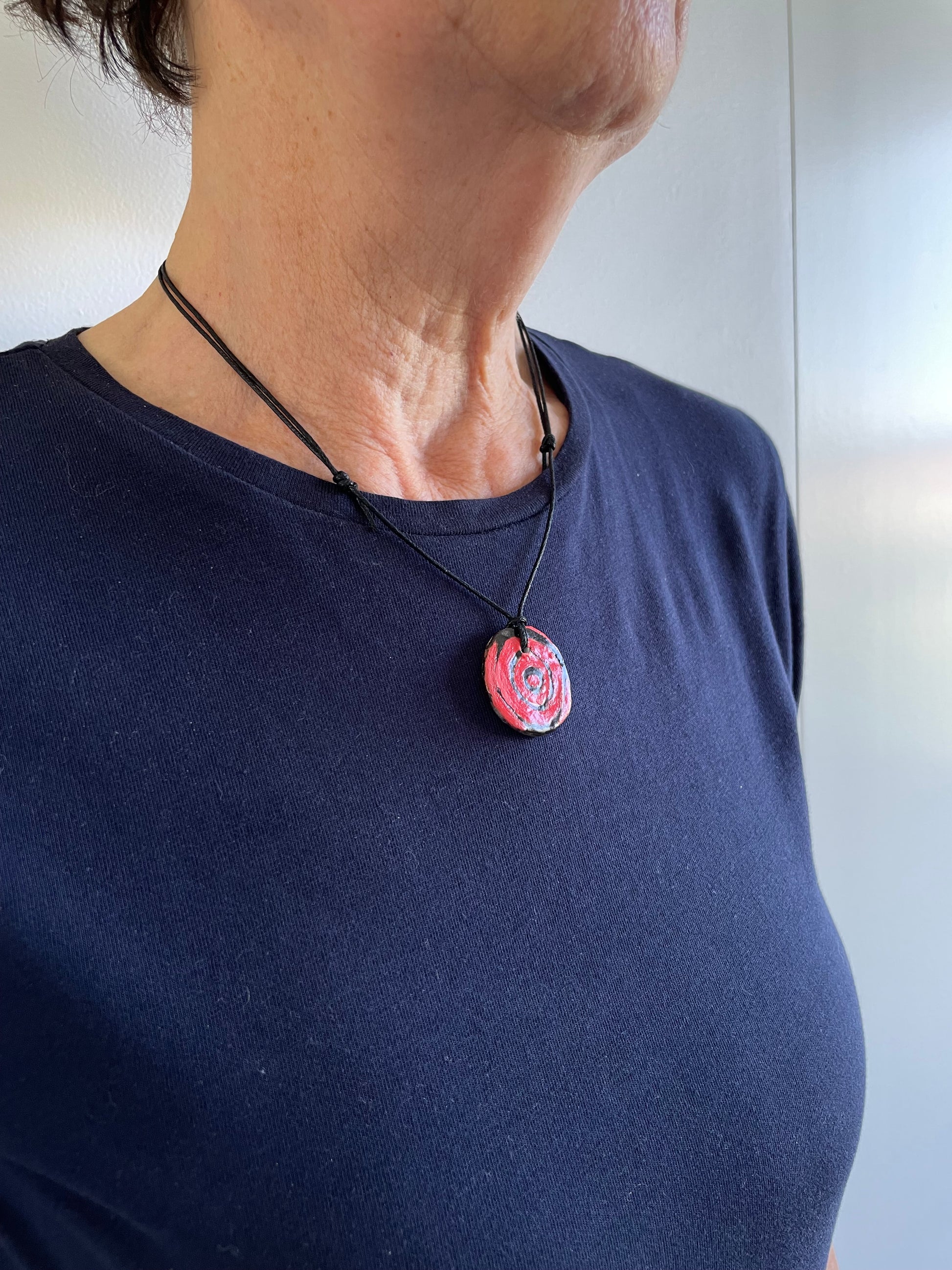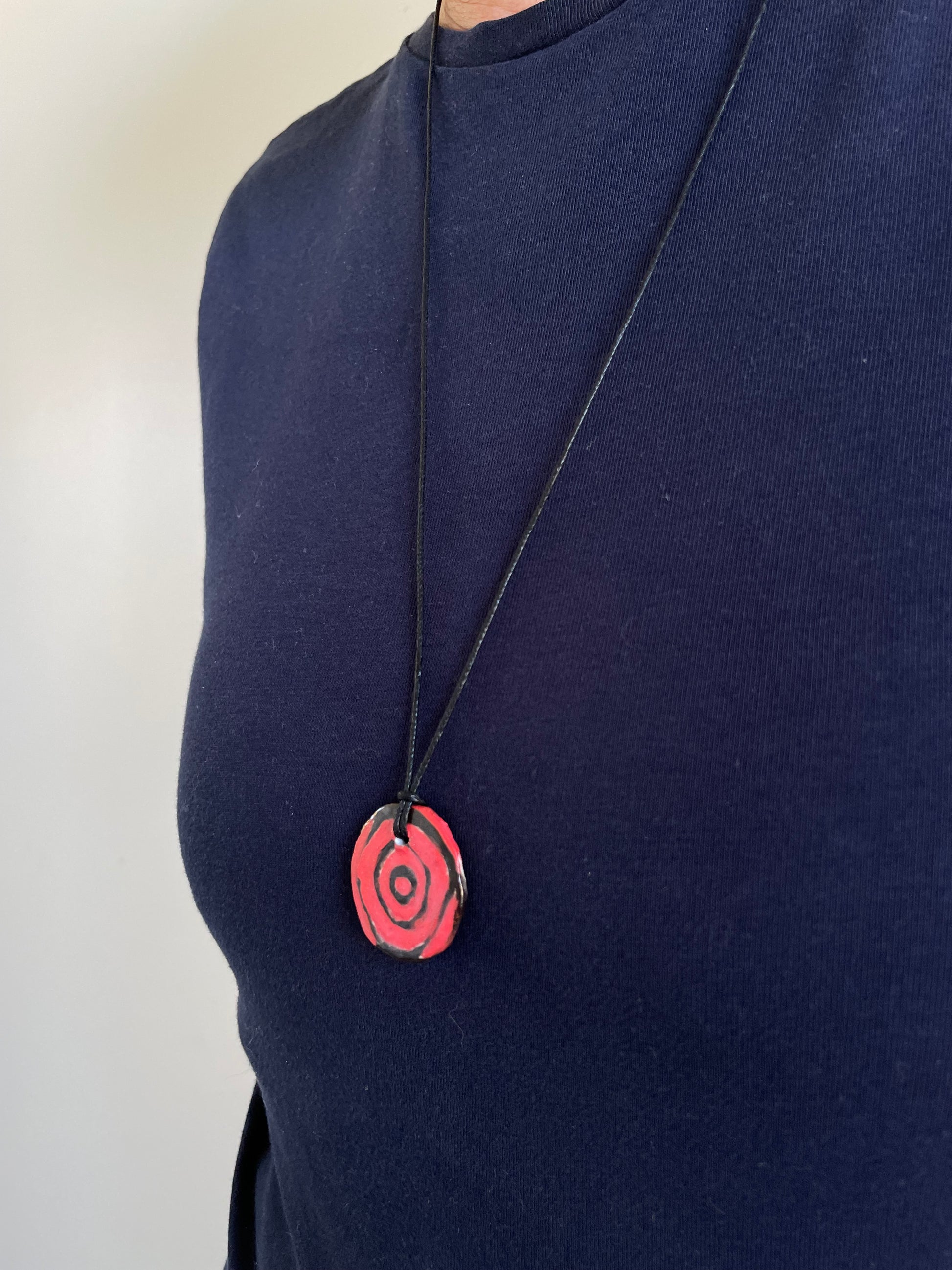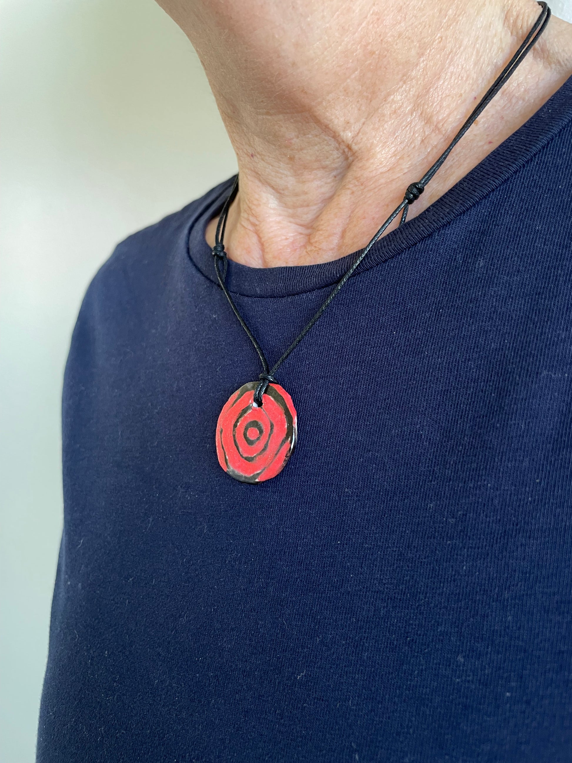 Porcelain necklace sample, handmade in Melbourne. Pendant is on an adjustable waxed cotton thread. Hand formed using porcelain clay. Adjust necklace length by pulling knots closer or farther apart.