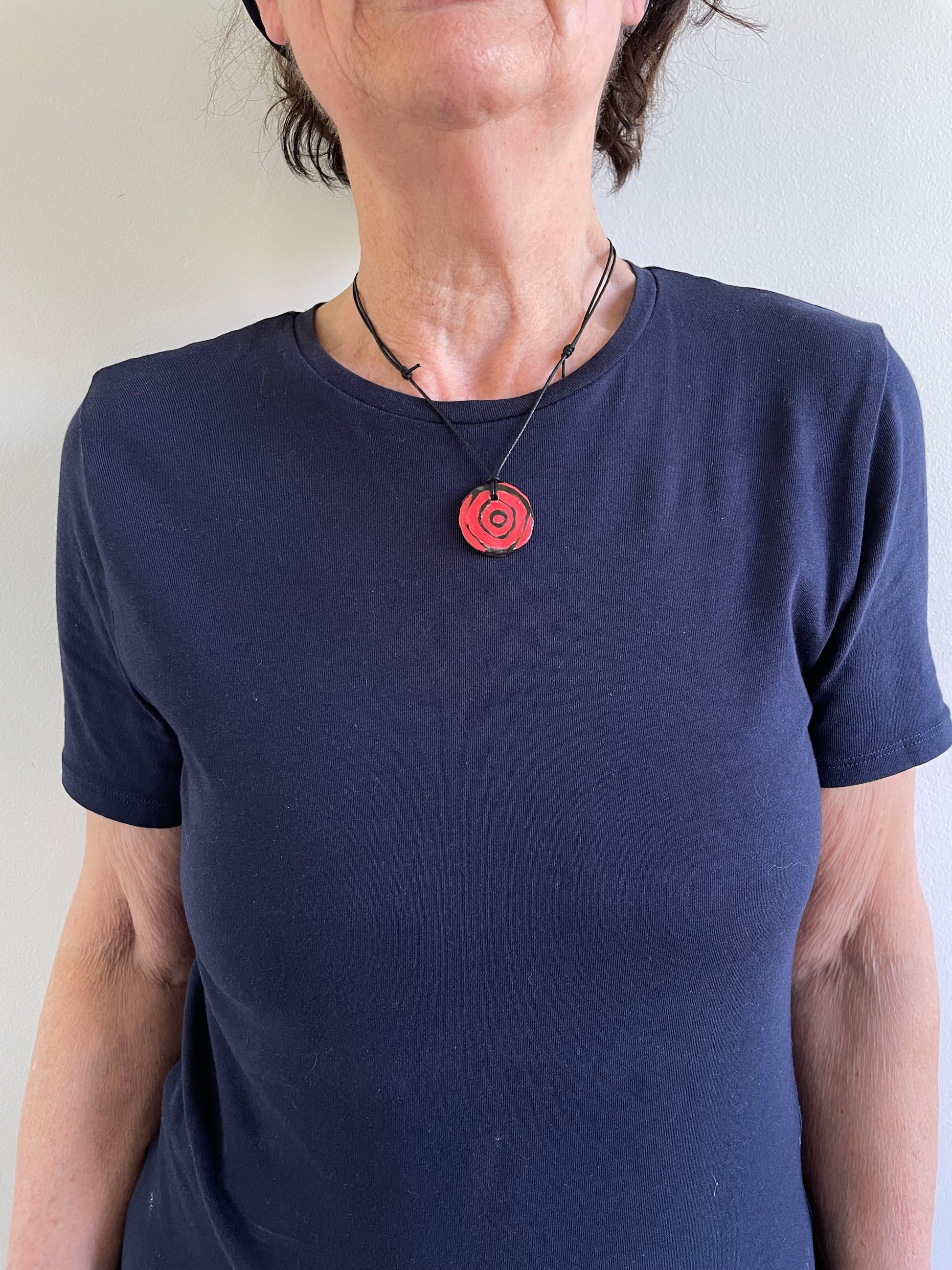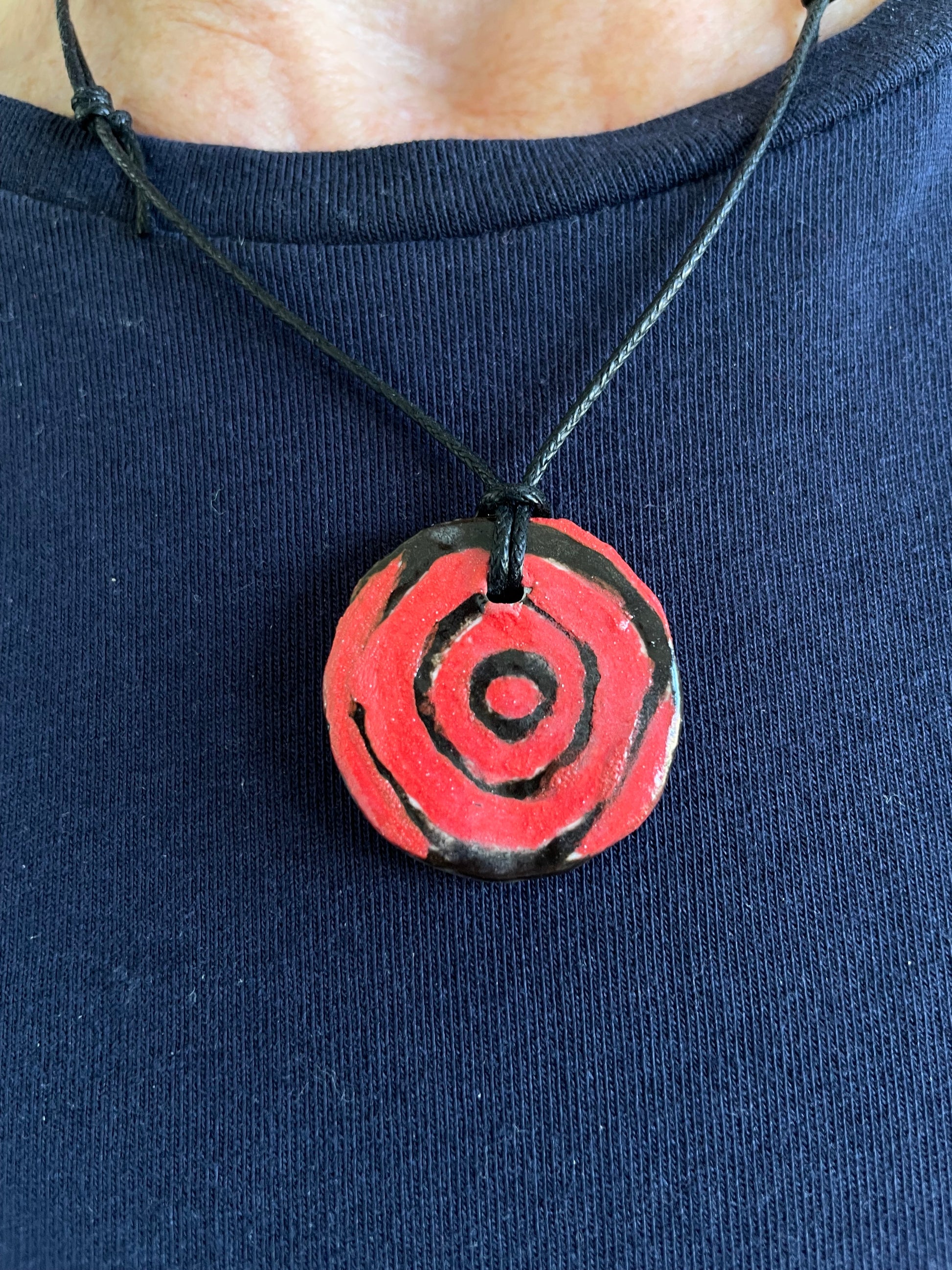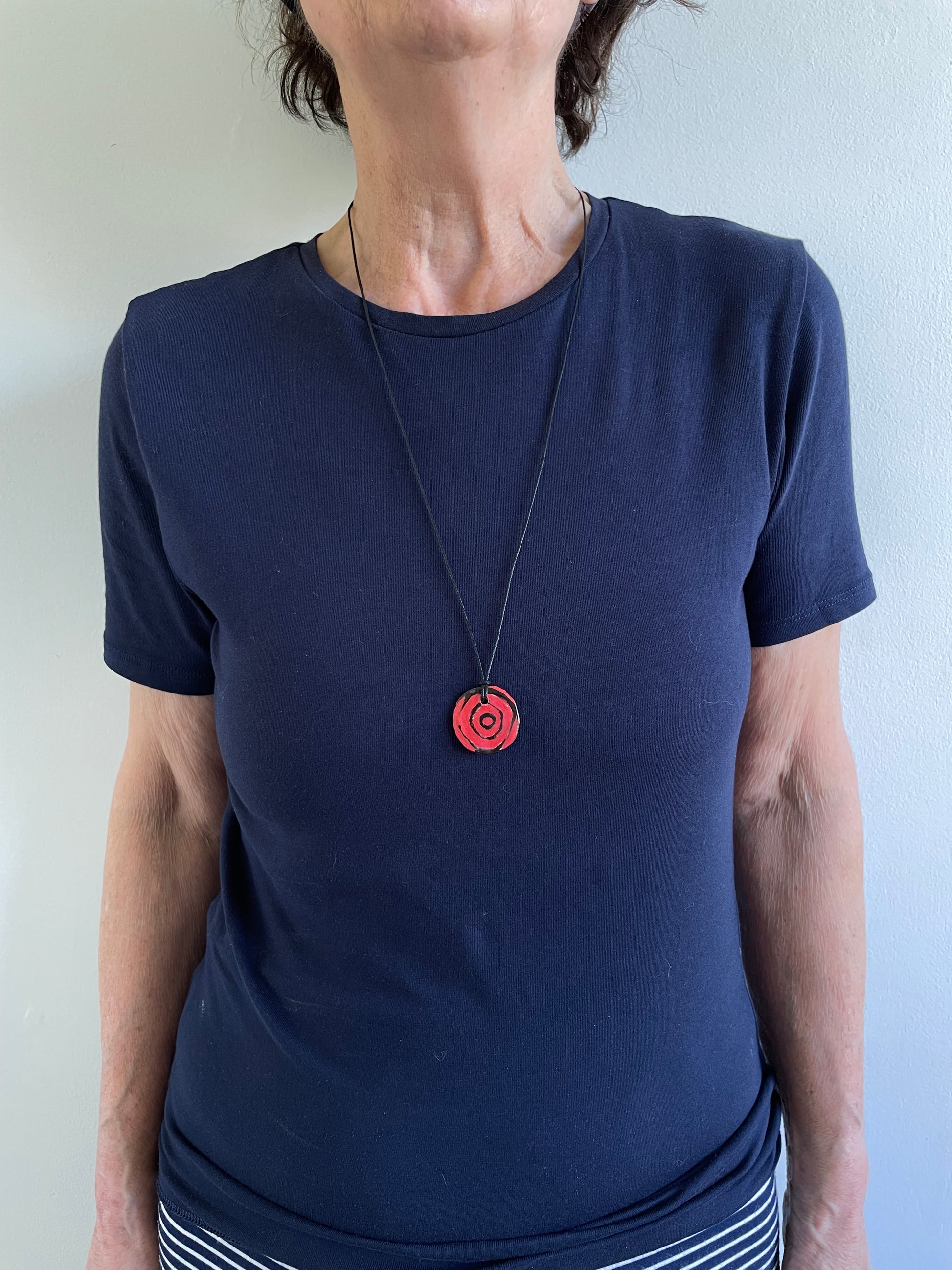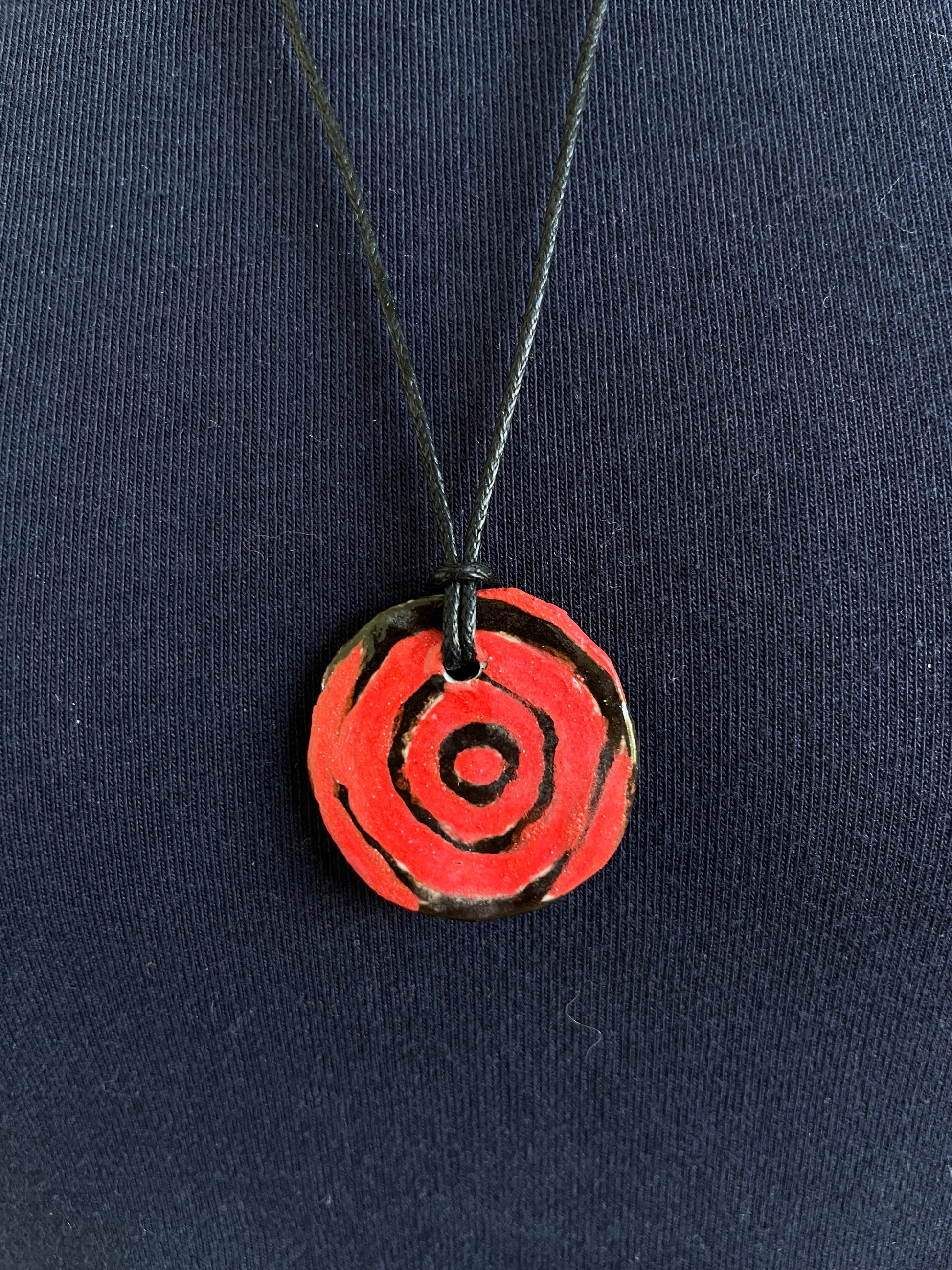 Porcelain necklace sample, handmade in Melbourne. Pendant is on an adjustable waxed cotton thread. Hand formed using porcelain clay. Adjust necklace length by pulling knots closer or farther apart.